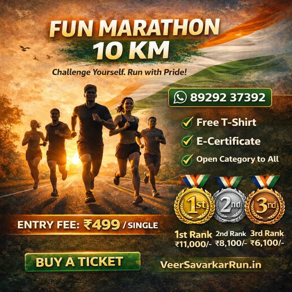 Veer Savarkar Inspire Run is a tribute to the indomitable spirit of Vinayak Damodar Savarkar, honoring his courage, patriotism, and lifelong dedication to the nation.